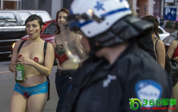 6月7日,加拿大蒙特利尔,赤裸的学生大游行,抗议学费上涨。