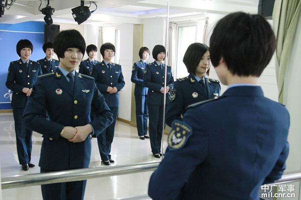 北空某通信总站话务女兵咬筷子练微笑(1)(2)